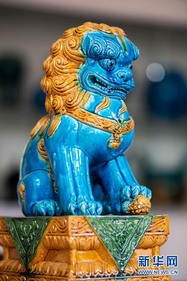 这是3月3日在葛原生工作室拍摄的孔雀蓝琉璃工艺品。新华社记者 杨晨光 摄