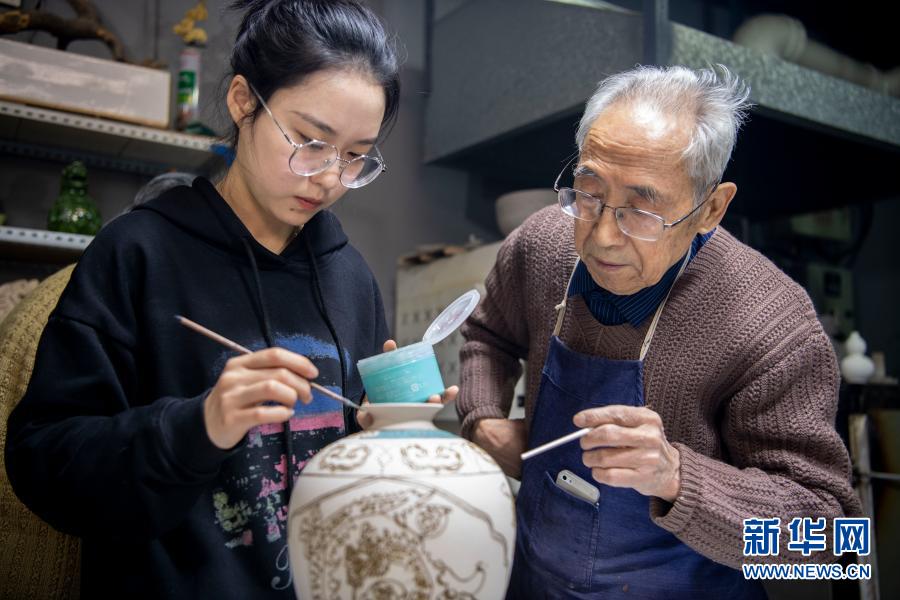 葛原生(右)在对徒弟进行技术指导(2月3日摄)。新华社记者 杨晨光 摄