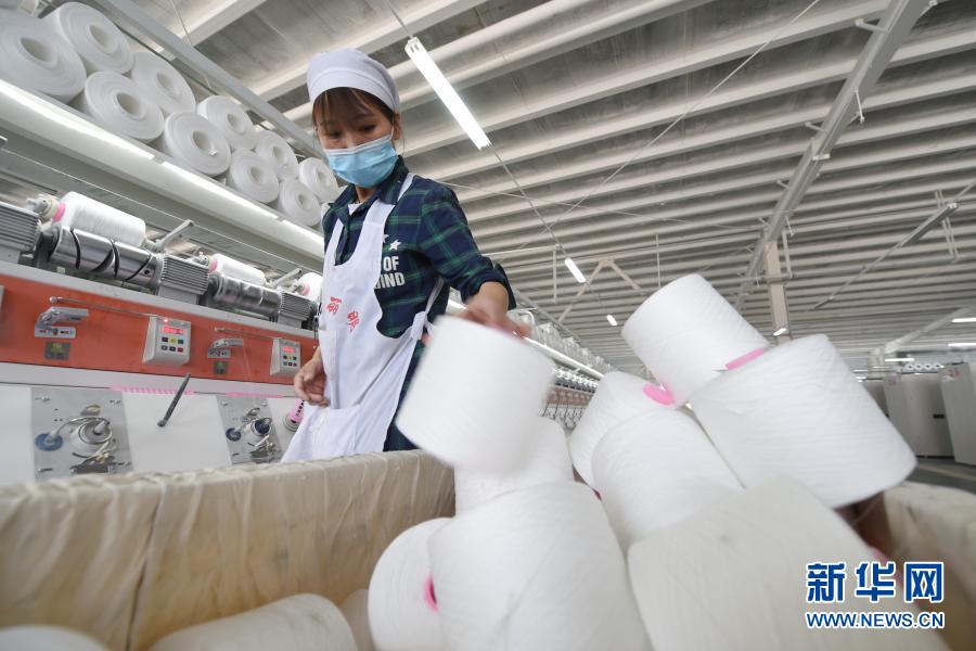 3月3日,在东乡族自治县方大丽明纺织有限公司扶贫车间,工人在涤纶缝纫线产品生产线上忙碌。新华社记者 范培珅 摄