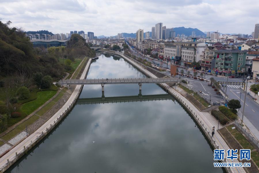 3月4日,空中俯瞰杭州市临安区锦溪,水质清澈(无人机照片)。