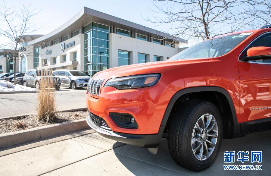 这是3月3日在美国芝加哥北郊拍摄的一家菲亚特克莱斯勒汽车专卖店展示的汽车。