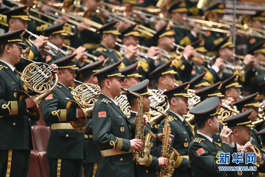 3月4日,中国人民政治协商会议第十三届全国委员会第四次会议在北京人民大会堂开幕。这是军乐团在演奏。
