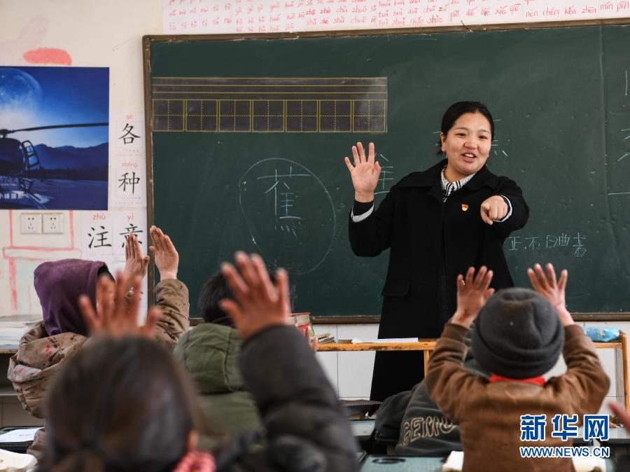 在四川省美姑县瓦以村村小,杨卓玛在检查学生们的手部卫生(3月2日摄)。新华社记者 王曦 摄