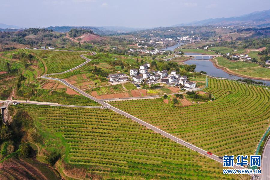渝北区大盛镇青龙村通过宜机化(适宜机械化)改造后的现代化果园(3月4日摄,无人机照片)。