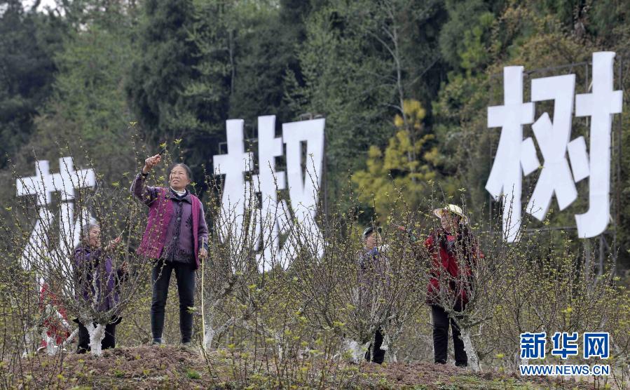 3月3日,在四川省巴中市平昌县土兴镇,村民在青花椒主题公园内劳作。