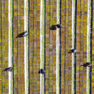 村民在景宁畲族自治县毛垟乡苔藓种植基地为苔藓除草(2月24日摄,无人机照片)。新华社记者 江汉 摄