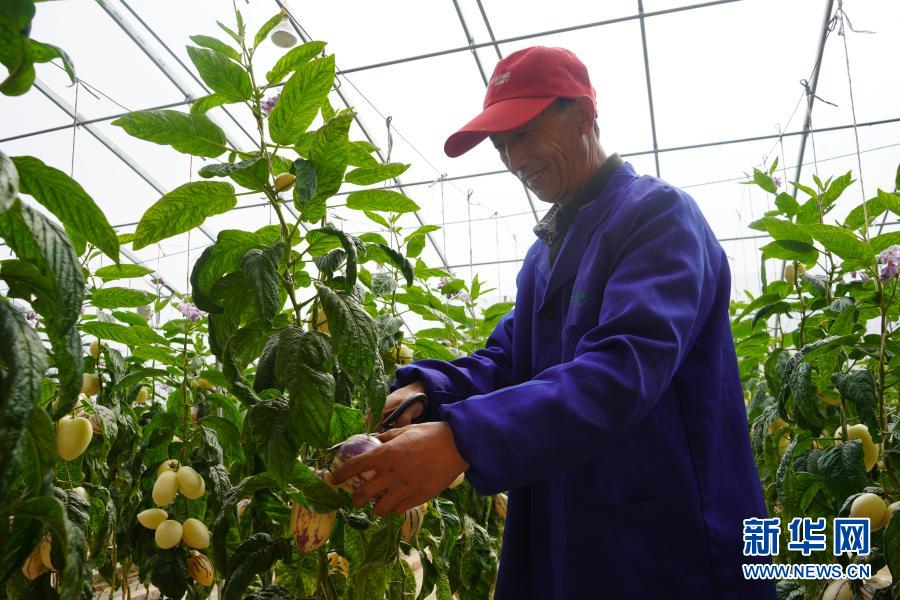 3月5日,民勤县大滩镇北中村村民韩国治在日光温室大棚采摘人参果。