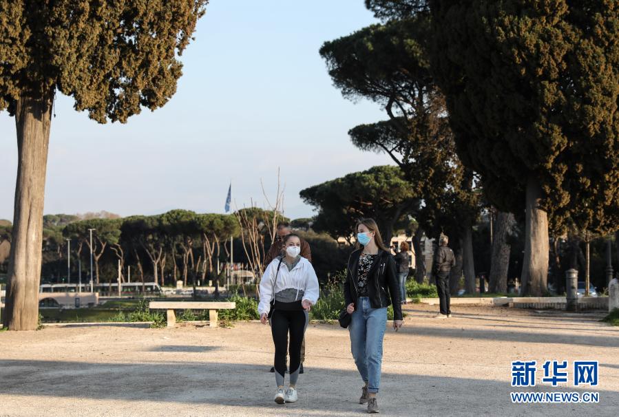 3月4日,人们戴着口罩走在意大利罗马街头。