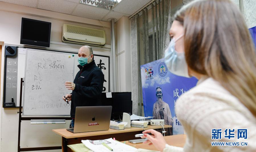 俄罗斯国立人文大学孔子学院近日正式开学,学生们戴上口罩重返课堂,开始新学期的学习。新华社发(叶甫盖尼·西尼岑摄)