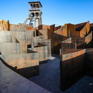 在比利时亨克市由旧矿区改建的C-Mine艺术中心广场上,有一件名为“迷宫”的装置艺术作品,“迷宫”由钢板搭建而成。作品构思巧妙,设计师利用几何结构创造出全新的空间体验,人们走在其中仿佛在看一场雕塑展,因此又被称之为“雕塑迷宫”。