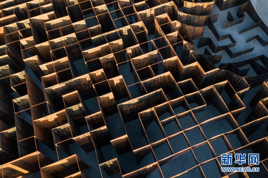 这是3月2日在比利时亨克市C-Mine艺术中心拍摄的装置作品“迷宫”(无人机照片)。