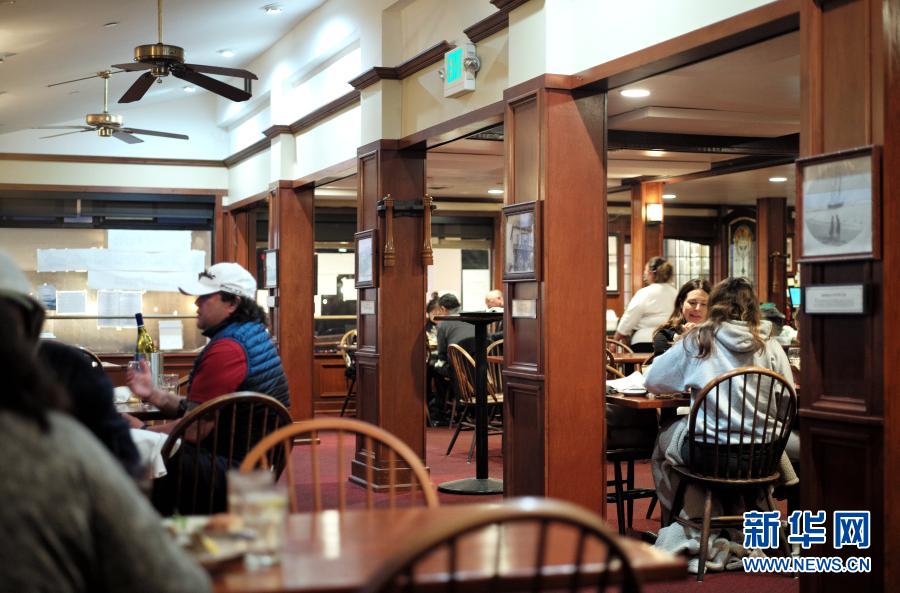 3月5日,人们在美国加利福尼亚州半月湾市一家餐馆内用餐。