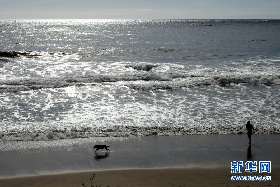 3月5日,人们在美国加利福尼亚州半月湾市海边休闲。