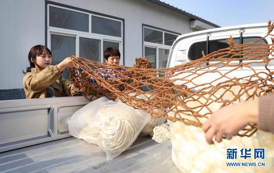 3月4日,闫佳欣将原材料装车,准备去农户家讲解帮助制作手工艺品。新华社记者 蔡湘鑫 摄