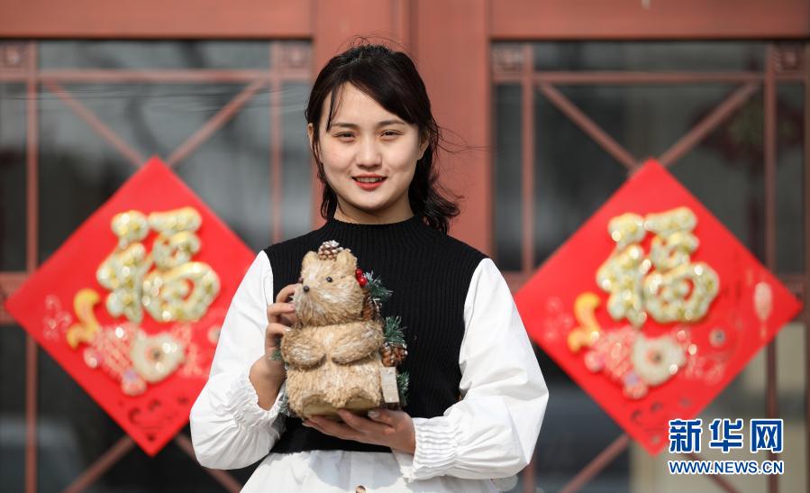 3月4日,闫佳欣展示她制作的一款手工艺品。新华社记者 姚剑锋 摄