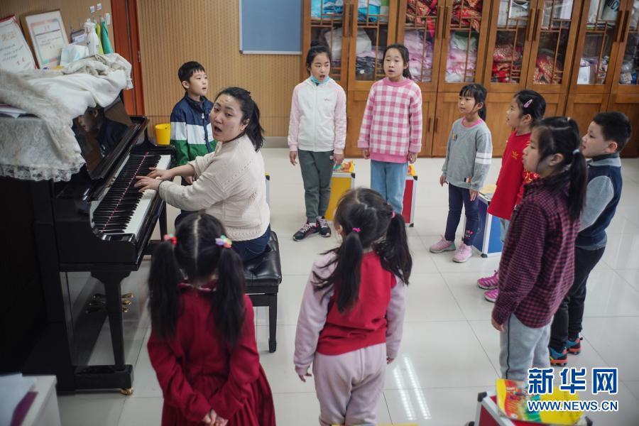 3月6日,在北京东城区明城青少年活动中心,学生们在上声乐课。