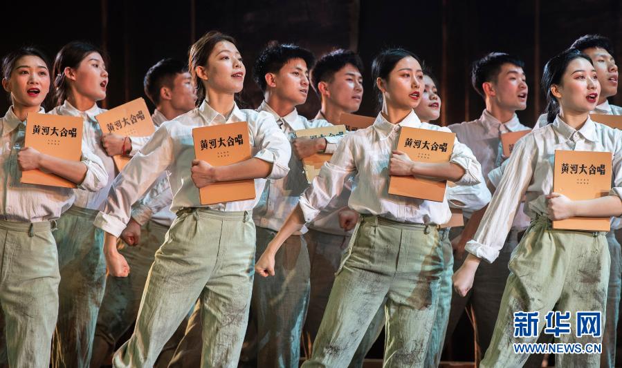 3月6日,演员在红色主题文化秀《延安 延安》中演唱《黄河大合唱》。