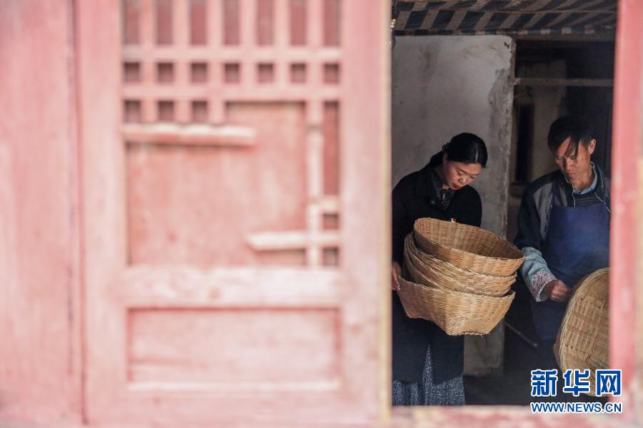 3月6日,坪子社区支部书记姚敏(左)与村民胡勇在家内交谈。新华社记者 欧东衢 摄