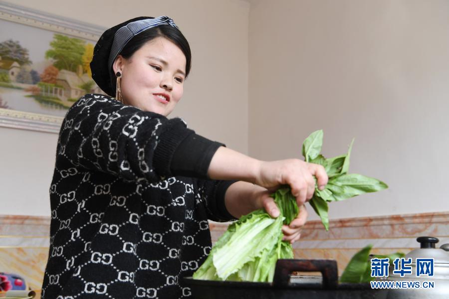 在东乡族自治县大树乡南阳洼村家中,马林红洗菜准备做午饭(3月4日摄)。新华社记者 范培珅 摄