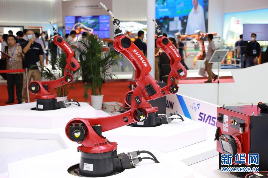 这是在第22届中国国际工业博览会上拍摄的天津新松机器人自动化有限公司的机器人智能焊接系统(2020年9月15日摄)。新华社发
