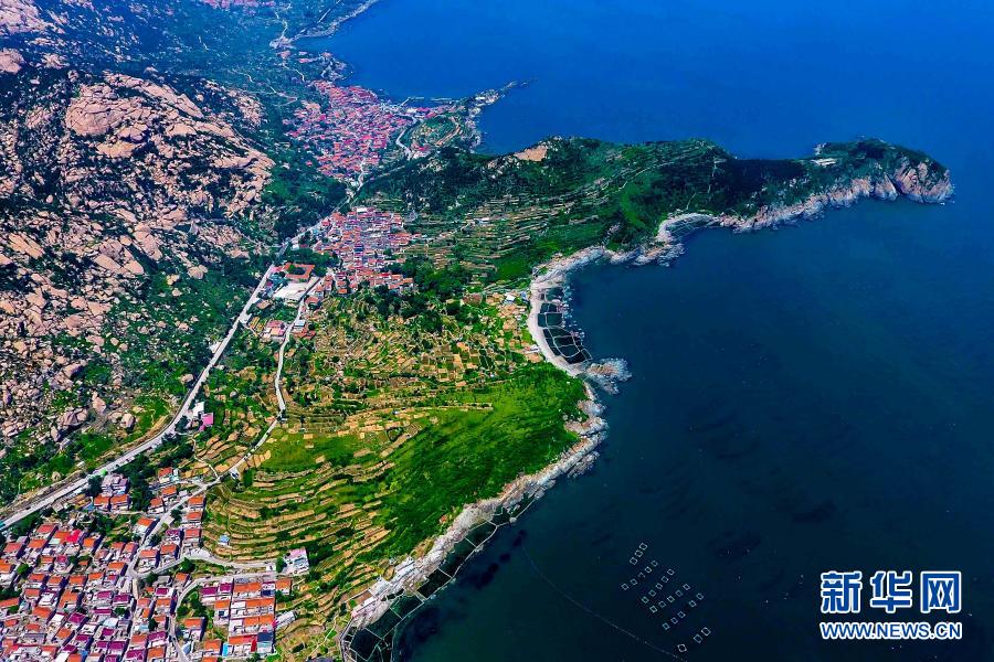 山东省青岛市崂山脚下的雕龙嘴村及绿茶茶园(2018年5月19日摄,无人机照片)。新华社记者 郭绪雷 摄