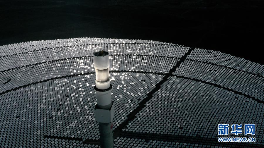 3月3日拍摄的位于青海省海南藏族自治州共和县光伏产业园内的一处塔式光热发电项目(无人机照片)。