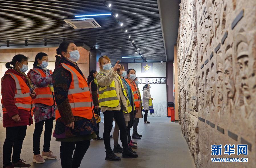 3月7日,建筑女工们在南昌八一起义纪念馆参观。新华社记者 万象 摄