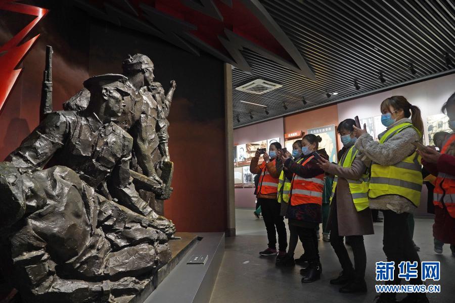 3月7日,建筑女工们在南昌八一起义纪念馆参观。新华社记者 万象 摄