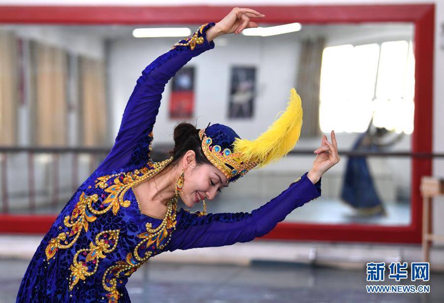 3月4日在新疆喀什地区歌舞剧团舞蹈队排练厅拍摄的阿米娜·玉素甫。