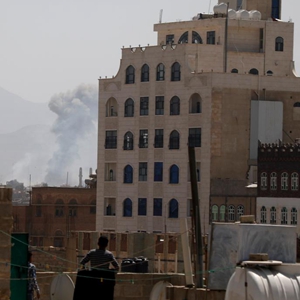 3月7日,也门首都萨那城区上空升起黑烟。