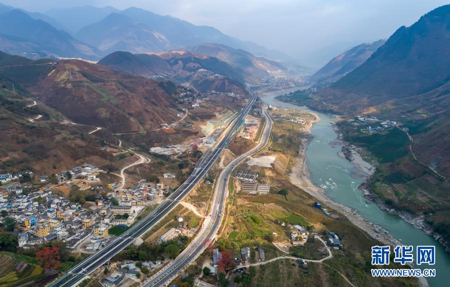 3月5日拍摄的保泸高速、美丽公路南延线与怒江(从左到右,无人机照片)。