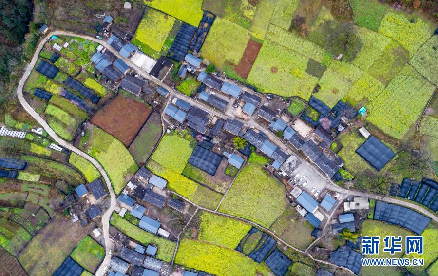 3月7日拍摄的怒江大峡谷村庄风光(无人机照片)。