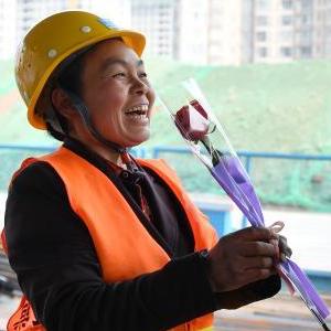当日是“三八”国际妇女节,许多女性工友坚守城市建设一线,在岗位上度过节日。