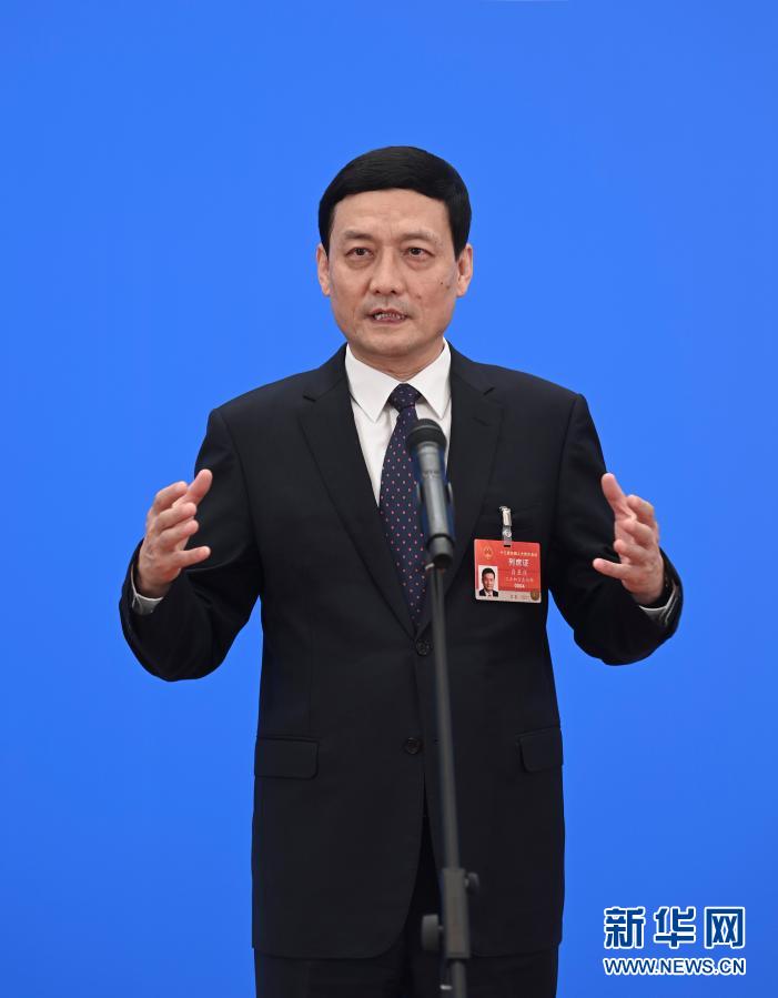 3月8日,第十三届全国人民代表大会第四次会议举行第二场“部长通道”采访活动。这是工业和信息化部部长肖亚庆通过网络视频方式接受采访。