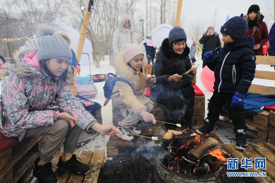 3月7日,人们在哈萨克斯坦首都努尔苏丹的中央公园烧烤。