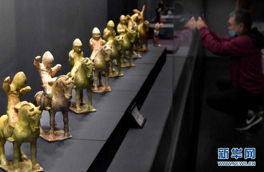 3月8日,参观者在“太平有象——汉唐乐舞展”上拍摄展品。新华社记者 李安 摄
