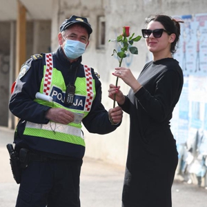 3月8日,一名女子手捧鲜花走在葡萄牙首都里斯本街头。