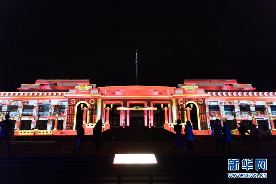 这是3月8日在澳大利亚堪培拉拍摄的老国会大楼的灯光投影。