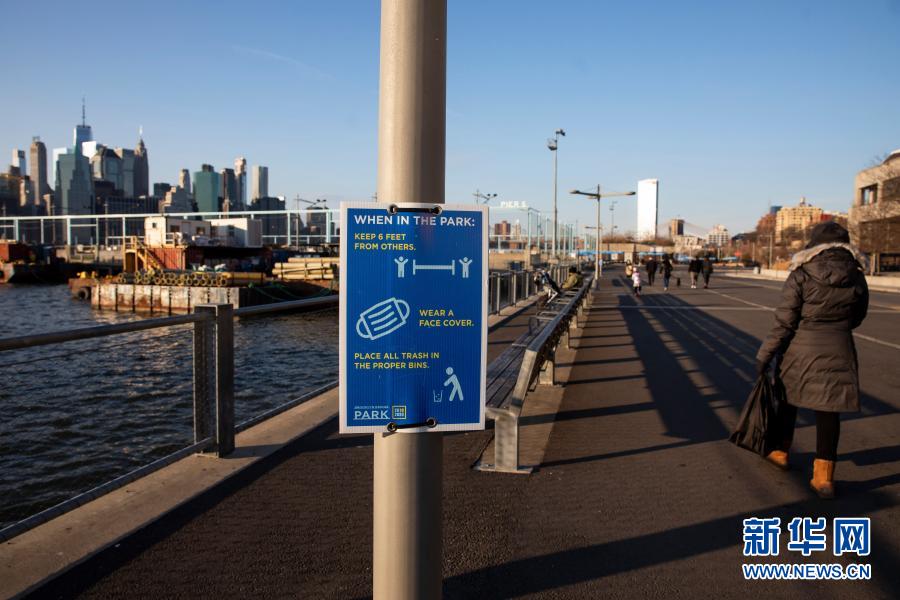 3月8日,美国纽约的公园内张贴着防疫提示。新华社发(郭克摄)