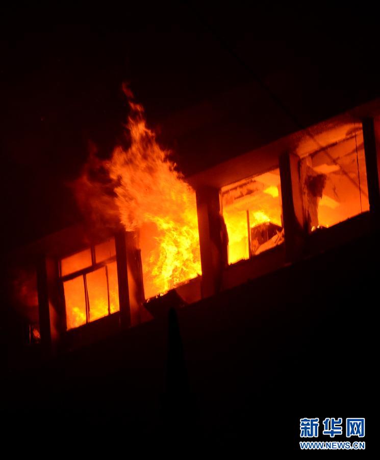 这是3月8日在印度西孟加拉邦加尔各答拍摄的办公楼失火现场。新华社发
