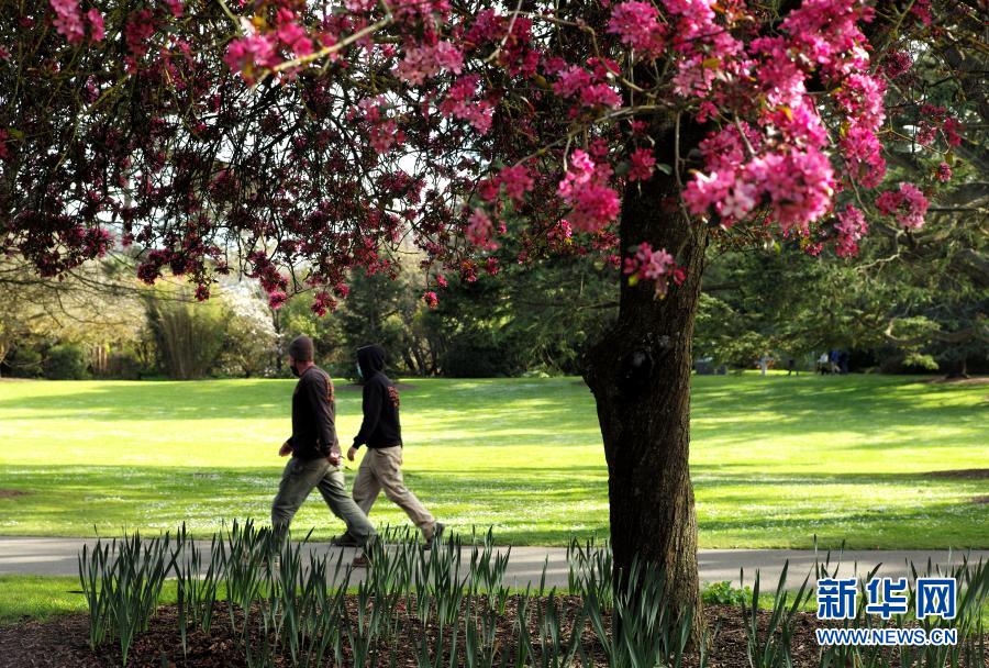3月8日,游客在美国加利福尼亚州旧金山植物园游览。