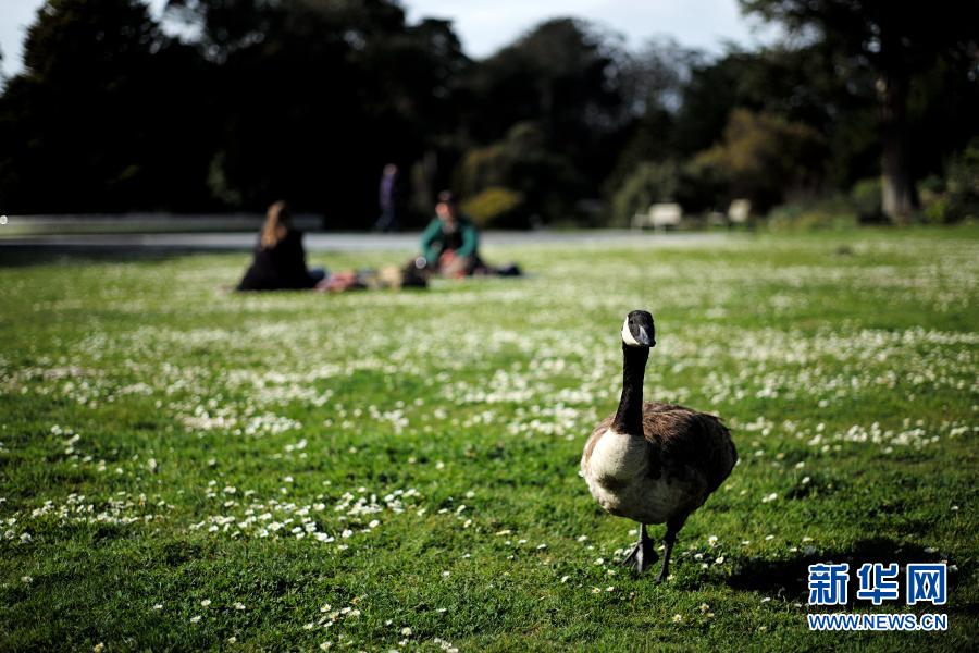 3月8日,一只野禽从美国加利福尼亚州旧金山植物园的草坪上走过。