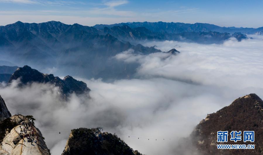 3月9日拍摄的华山云海景观(无人机照片)。