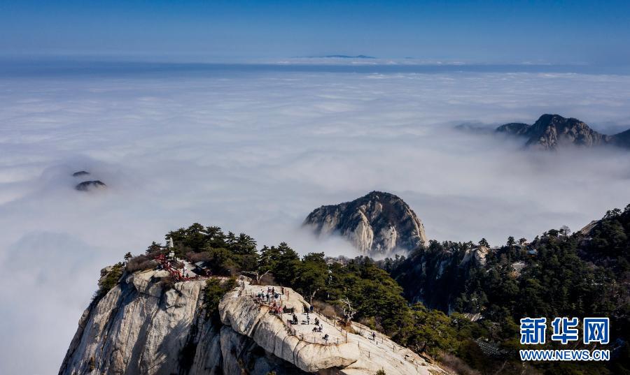 当日,西岳华山雨后初晴,山峦间云雾缭绕,美不胜收。