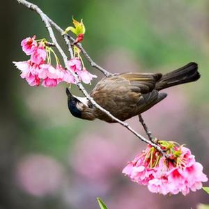 3月9日,小鸟在贵州省贵阳市云岩区一居民小区的花枝上停留。近日,贵阳市云岩区居民小区里的樱花次第盛开,吸引鸟儿在花间嬉戏,春意盎然。