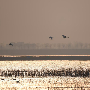 近日,随着天气转暖,黄河水面渐开冻,成群候鸟飞抵内蒙古鄂尔多斯市达拉特旗境内黄河沿线湿地。