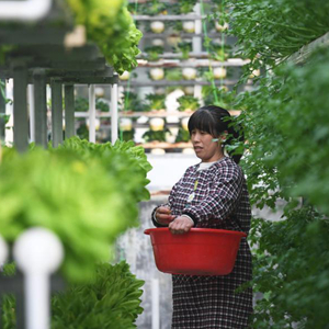 3月9日,在河北省曲周县一家创意农业园区,游客在体验蔬菜采摘。