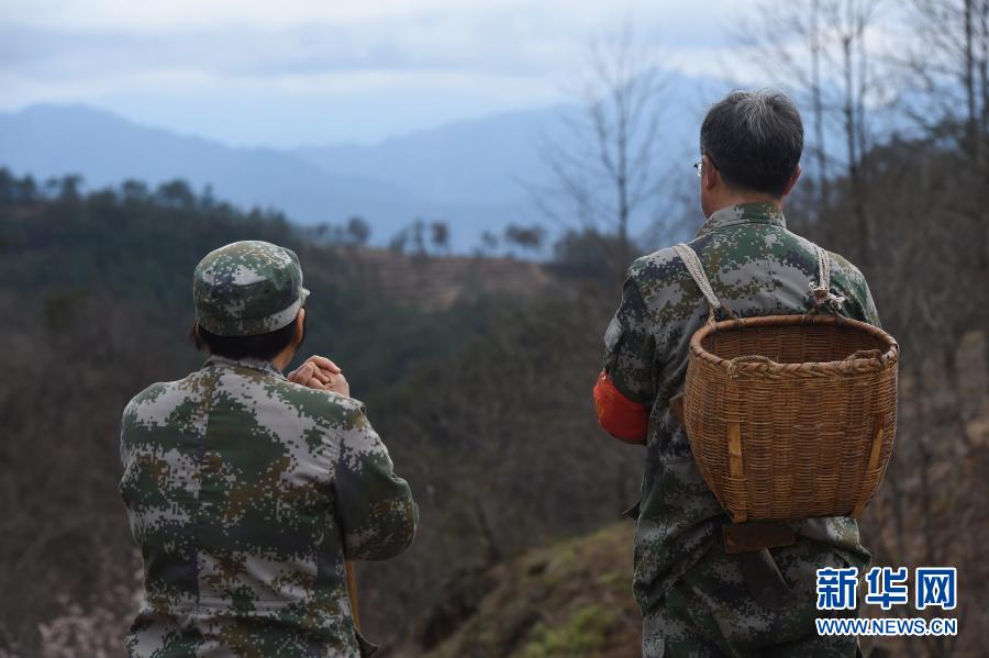 3月9日,黄淑萍(左)和洪晓春在巡山护林途中休息。
