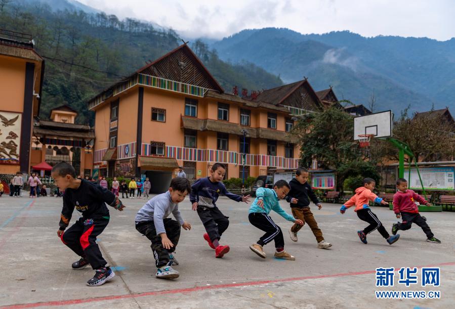 3月9日,独龙江乡中心学校的学生在上体育课。