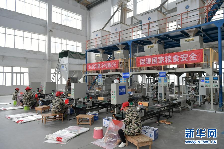 3月10日,在江西省南昌县科源种业公司车间,工人在生产线上将包装好的种子装袋准备外运外销。